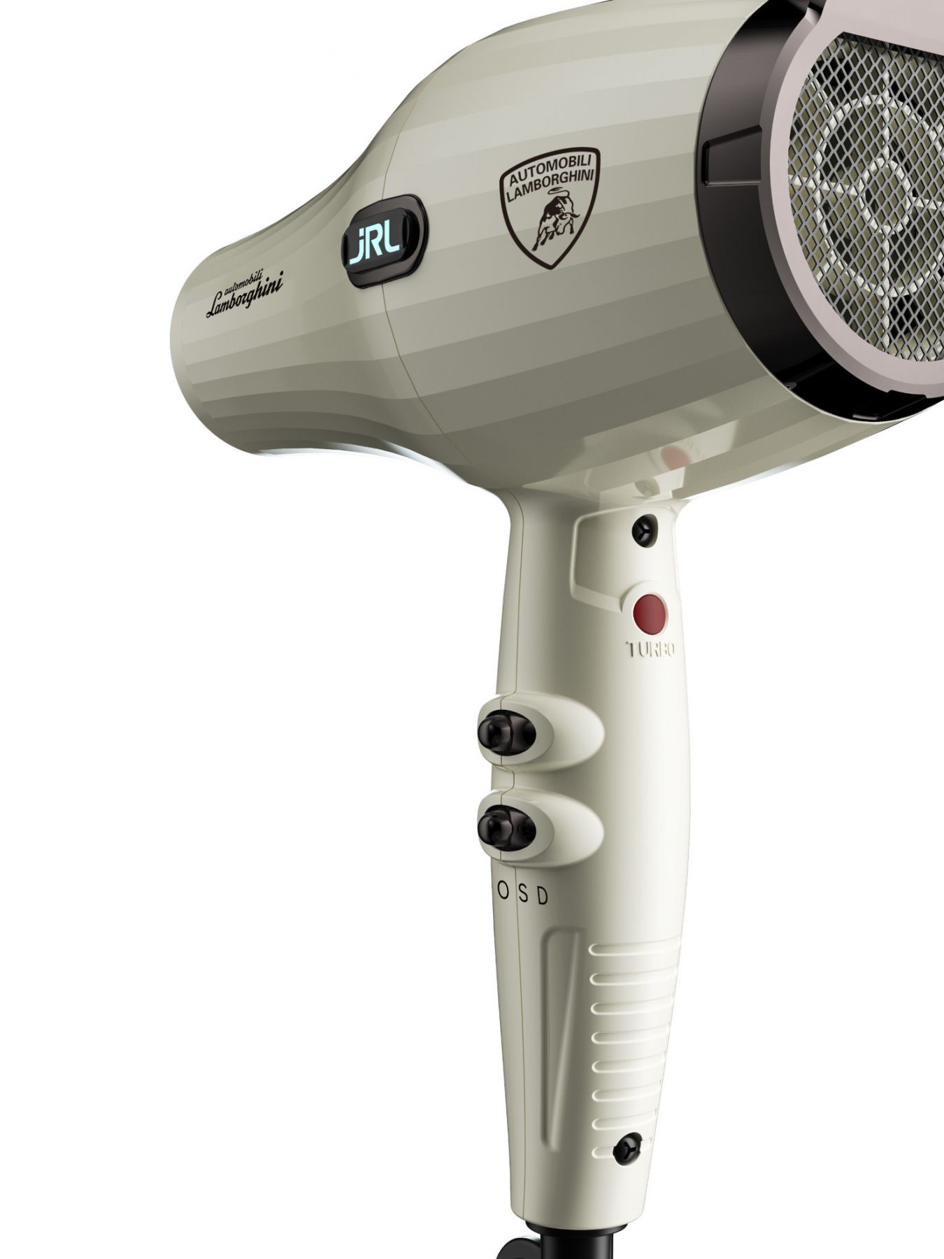 Suszarka do włosów JRL Lamborghini z logo legendarnej, włoskiej marki Lamborghini wyróżnia się na tle innych wbudowanymi grafenowymi przewodnikami ciepła co skraca czas stylizacji i zapewnia gładkie, lśniące włosy. Suszarka do włosów JRL została wyposażona w dwa tryby: do szybkiego suszenia (turbo) oraz do stylizacji. Funkcja Turbo zapewnia silny przepływ powietrza co znacznie skraca czas suszenia.