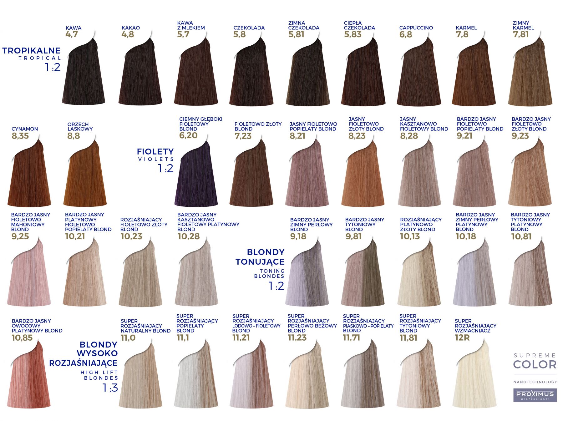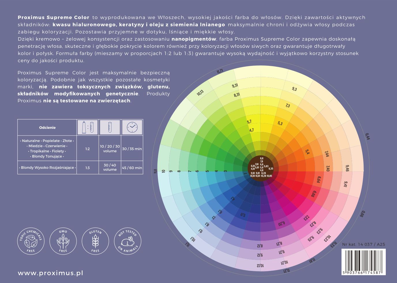 Farba do włosów Proximus Supreme Color Nanotechnology stanowi przełom w ofercie marki. Gwarantuje ona nową jakość nanokoloryzacji za wyjątkowo korzystną cenę. Formuła farby została udoskonolona z myślą o włosach coraz częściej narażonych na silne, szkodliwe działanie czynników zewnętrznych i cywilizacyjnych.